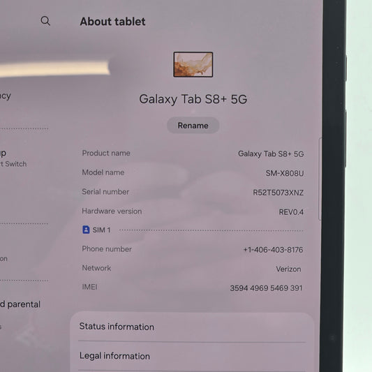 Verizon Samsung Galaxy Tab S8 Plus 8.0" 128GB Black SM-X808U