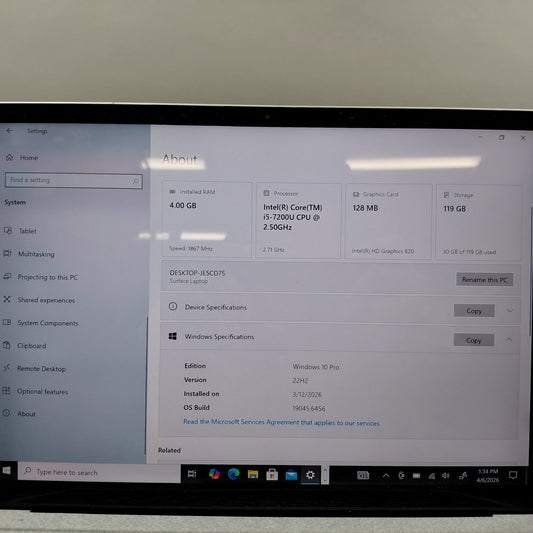 Microsoft Surface Laptop 1 1769 11.6" i5-7200U 2.5GHz 4GB RAM 128GB