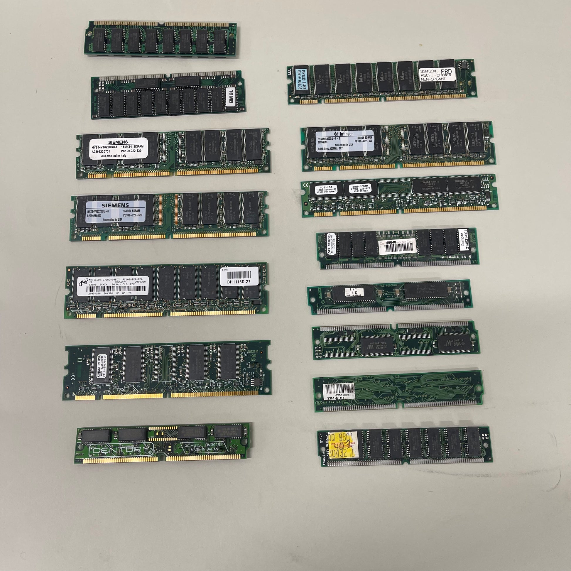 - 15 Asssorted Memory Sticks, SIEMENS, PNY,KINGSTON, MT,EDO,CENTURY,INFINIEON,TOSHIBA, NEC